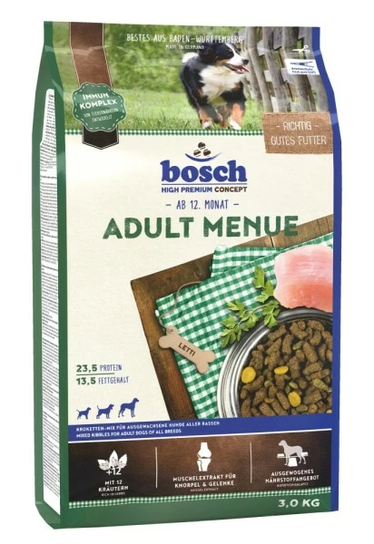 Der Gehalt an Eiweiß (23,5 %) und Fett (13,5 %) ist so gewählt, dass sowohl normal aktive ausgewachsene Hunde als auch Hunde mit gesteigerter Aktivität mit ADULT MENUE optimal versorgt werden können.
