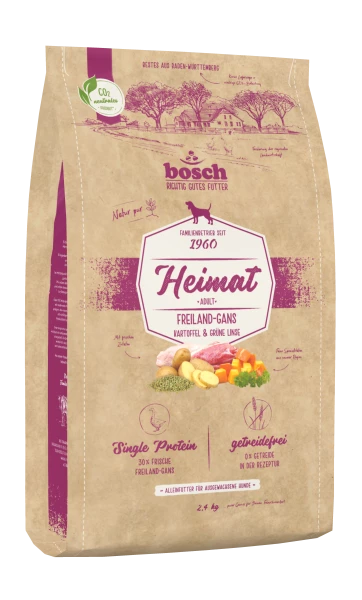 Als spezielles Single Animal Rohprotein-Produkt ist unser Heimat Adult mit frischer Freiland-Gans besonders für sensible Fellnasen mit Unverträglichkeiten gegen bestimmte tierische Eiweiße geeignet.