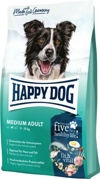 Happy Dog fit & vital Medium Adult ist perfekt abgestimmt auf die Bedürfnisse ausgewachsener, mittelgroßer Hunde bis 25 kg. Die ausgewogene und leckere Vollnahrung basiert auf dem einzigartigen Happy Dog Natural Life Concept®- und ist mit wertvoller Neuseeland-Muschel angereichert. Wichtige Omega-3- und Omega-6 Fettsäuren sind gut für Haut und Fell. Die sehr bekömmliche Rezeptur eignet sich optimal für nor-malaktive Hunde von 11 bis 25 kg.