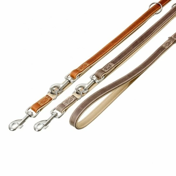 Die Führleine Comfort in ihrer schlichten Eleganz ist eine gelungeneKombination von äußerst geschmeidigem, gespaltenem Vollleder auf derOberseite und weichem Nappaleder auf der Unterseite und gewährleisteteine angenehme Oberflächenhaptik. Durch die einzelnenProduktionsschritte des Riegelns, Abnähens und Buggens entsteht einwertiges, formbeständiges Qualitätsprodukt mit weichen Kanten. DieFührleine ist 3fach verstellbar.