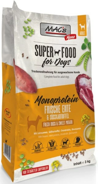 MACs Mono wurde speziell für allergieanfällige Hunde entwickelt. Die Grundlage ist eine Fleisch-/Fischsorte als Rohproteinlieferant und Kartoffel als Kohlehydrat-Lieferant. Diese Kombination mit Leinsamen und Seealgenmehl sorgen für eine ausgewogene Ernährung und gleichzeitig für ein besonderes Geschmacksvergnügen für Ihren Hund.