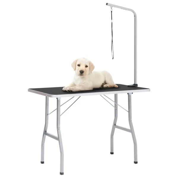 Der Hunde-Schertisch ist eine gute Wahl, um Ihren schönen Haustieren den größtmöglichen Komfort beim Pflegen zu bieten. Dieser Haustier-Pflegetisch wird von Stahlbeinen getragen, wodurch er stabil und robust ist. Die große rutschfeste Tischplatte schafft eine bequeme Oberfläche, auf der Ihre Haustiere bequem stehen können. Zusätzlich ist der Galgen aus Edelstahl höhenverstellbar. So können Sie eine perfekte Höhe einstellen, die zu der Größe Ihres Haustieres passt. Der Tisch ist faltbar und ideal für mobile Hundefriseure und den Heimgebrauch, da er leicht zu verstauen ist. Darüber hinaus verhindern die runden Ecken Verletzungen.